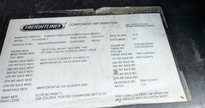 Vehicle VIN; 3AKBGKBGXGSHC8648